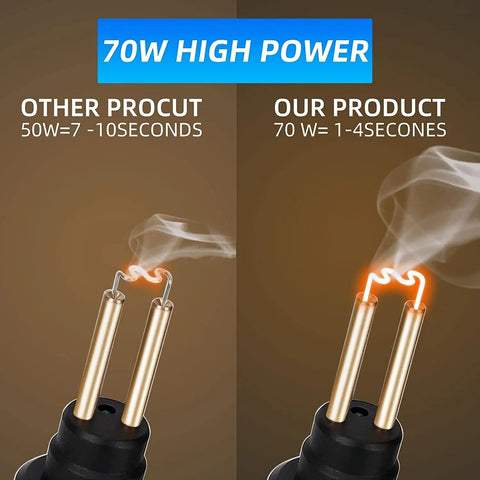 Ce pistolet à souder est capable de réparer au moins 98% des plastiques présents sur le marché. Il convient parfaitement pour la réparation de pare-chocs, tableaux de bord, supports de lampe, bagues en plastique, radiateurs, spoilers, poignées, phares, ailes en plastique, et bien plus encore.