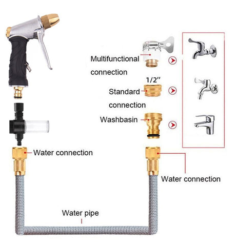 Notre pistolet à haute pression convient à tous les tuyaux d'arrosage standard français.