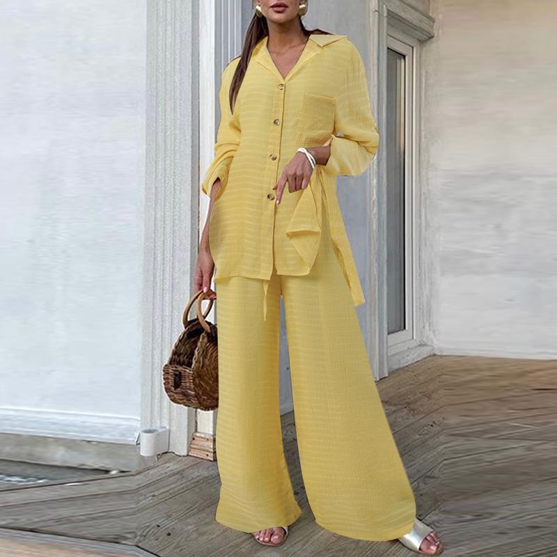 L'ensemble décontracté est un choix idéal pour les femmes qui cherchent à se sentir à l'aise tout en ayant du style. L'ensemble comprend un haut ample et un pantalon à jambes larges, qui créent un look décontracté et confortable.