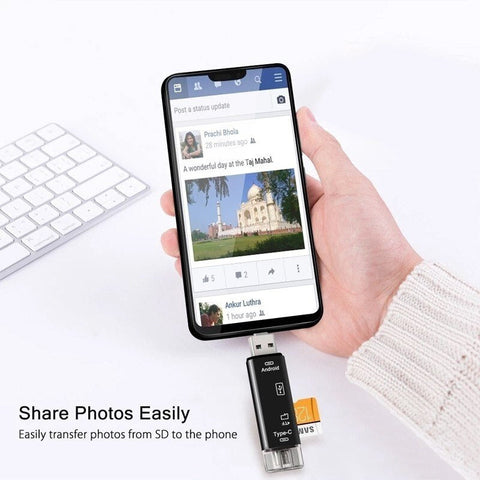 Le lecteur contient différents types de ports USB ce qui le rend compatible avec tous les smartphones et tablettes Android / USB C prenant en charge la fonction OTG. Lisez vos vidéos et vos musique directement à partir de la mémoire externe sans occuper d’espace sur l’appareil. Partagez vos vidéos ou vos photos avec votre famille ou vos amis à tout moment.