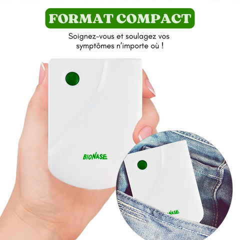 Rhinite, sinusite, rhume, nez qui coule ou encore allergies ... En seulement 10 minutes d'utilisation par jour tous vos problèmes disparaissent ! Bionase est un appareil de thérapie portable qui traite rapidement et efficacement vos symptômes grâce à la thérapie infrarouge afin de vous apporter un soulagement instantané !