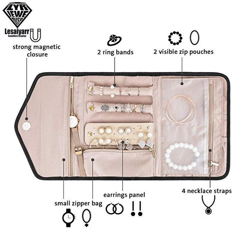 Gardez tous les bijoux bien organisés ! Cette pochette est livrée avec 6 sections différentes , désignées pour différents accessoires, des montres, boucles d'oreilles, créoles, bagues, bracelets aux colliers !