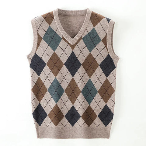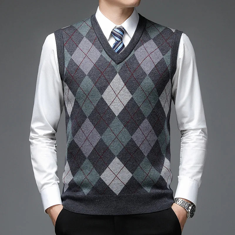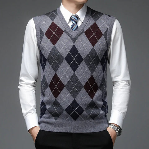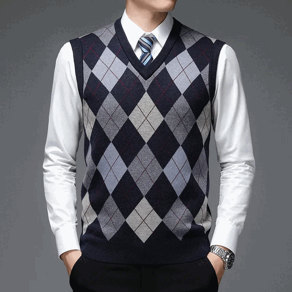 Découvrez le Pull Sans Manche Col V à Motif Carreaux 🧶